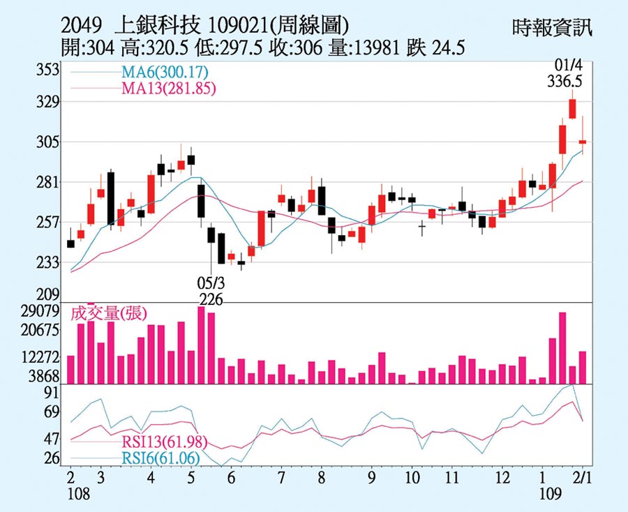 上銀(HIWIN)因美系外資預期農歷年后,大陸線性導軌等傳動系統組件及自動化設備需求增溫而可受益,股價可望出現補漲行情,將投資評等調升至加碼,目標價從255元上調至410元。