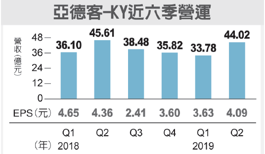 亞德客第2季合并營(yíng)收凈額44.02億元,季增30%、年減3%,營(yíng)業(yè)毛利20.87億元,季增35%、年減8%,毛利率47.42%,較第1季的45.81%增加1.6個(gè)百分點(diǎn);稅前盈余10.61億元,稅后純益7.72億元,季增13%、年減6%,每股稅后純益4.09元。