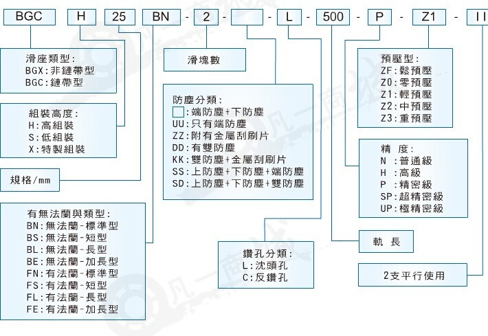 異物進入通常為降低滑軌壽命的主因,由于導軌滑塊的精密度主要為滑軌、滑座與鋼珠循環精密度維持,所以再小的異物進入循環溝,都會些微造成導軌滑塊的跳動、頓點甚至是永久性破壞,所以清潔度與防止塵埃進入,都是提升滑軌品質的重點,BGX之防塵系統則針對異物進入之方式分為上防塵與下防塵系統。針對滑軌沉頭孔與滑軌滑座之間隙作防塵之保護。