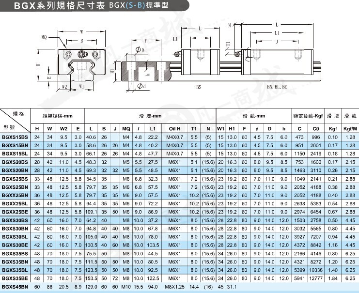 BGX線性滑軌鋼珠循環中使用了高分子聚合物作為循環路徑,僅留下滑座與滑軌需要與鋼珠做精密配合的軌道,使鋼珠產生尖銳聲響的機會大幅度下降。