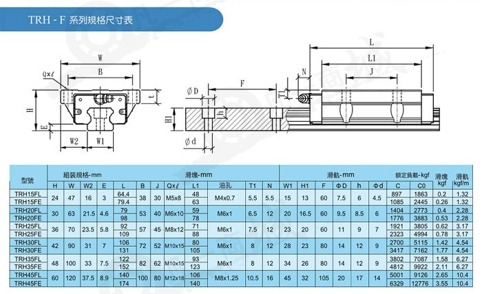 TBI直線導(dǎo)軌為一種滾動導(dǎo)引,借由鋼珠在滑塊與滑軌之間作無限滾動循環(huán),負載平臺能沿著滑軌輕易地以高精度作線性運動。與傳統(tǒng)的滑動導(dǎo)引相較,滾動導(dǎo)引的摩擦系數(shù)可降低至原來的1/50,由于起動的摩擦力大大減少,相對的較少無效運動發(fā)生,故能輕易達到μm級進給及定位。再加上滑塊與滑軌間的束制單元設(shè)計,使得直線導(dǎo)軌可同時承受上下左右等各方向的負荷,上述陳列特點并非傳統(tǒng)滑動導(dǎo)引所能比擬,因此機臺若能配合滾珠螺桿,使用直線導(dǎo)軌作導(dǎo)引,必能大幅提高設(shè)備精度與機械效能。